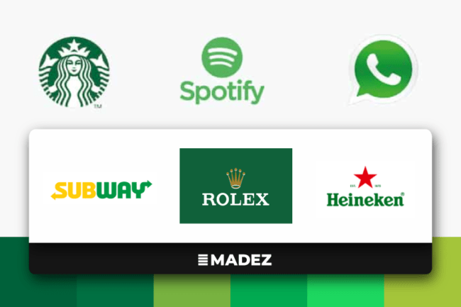 초록색은 신선함과 친환경의 대명사로 이용되는 색상입니다. 또 번영과 부의 상징으로서 롤렉스나 스타벅스에서 이용되기도 합니다. 초록색을 이용하는 브랜드의 경우 친환경과 번영의 이미지가 합쳐져 스스로의 가치에 더 엄격하며, 사회적인 책임감을 다하는 브랜드로 보여지는 경향이 있습니다.